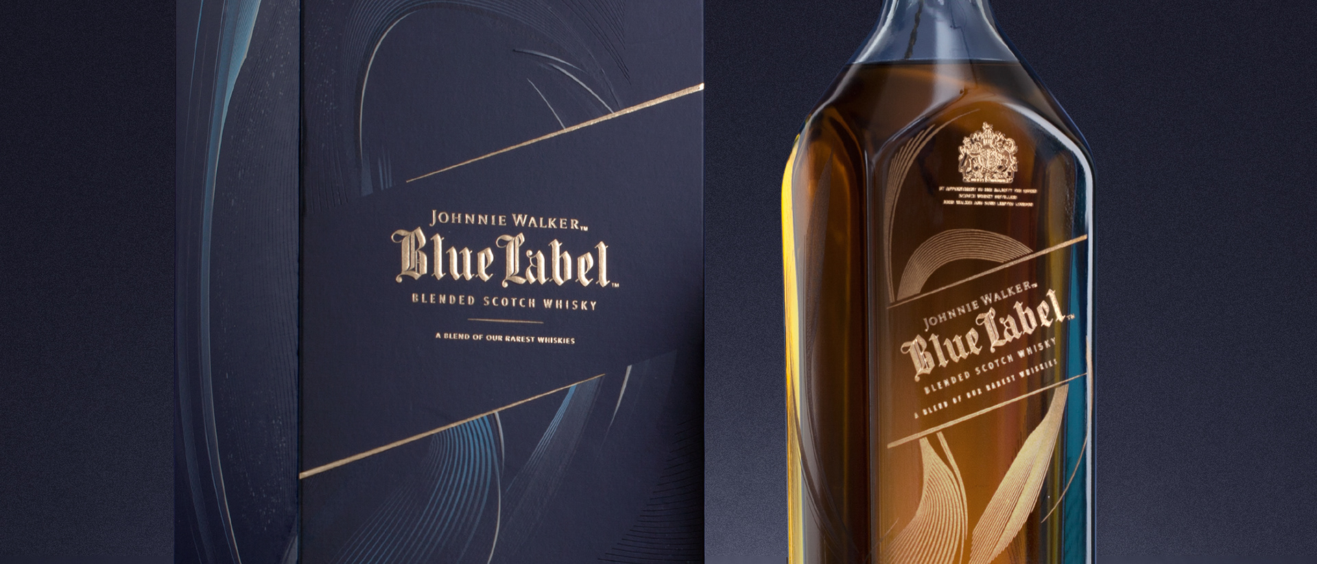 JOHNNIE WALKER BLUE LABEL | This Limited Edition packaging for Johnnie Walker Blue Label was an exercise in subtlety. Hundreds of thin lines and elegantly blended shapes printed in various ways, and even cut into the box, makes for a very premium, tactile experience.