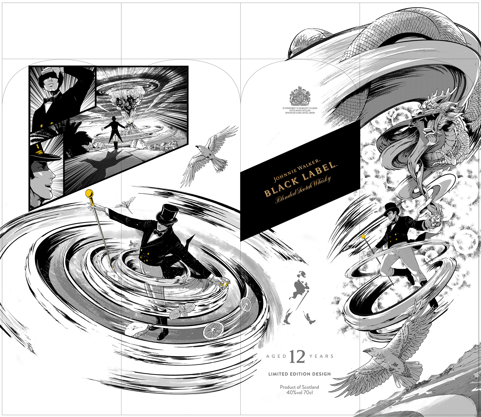 | We had a great time putting together this design for a project that sadly never materialised. Inspired by manga, this narrative was derived around an epically magical journey of discovery and taste.